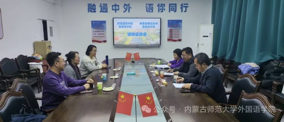 展专题调研与交流。千亿国际娱乐院长赵晓军、副院长那日苏、英语系主任张贵超参加座谈会。