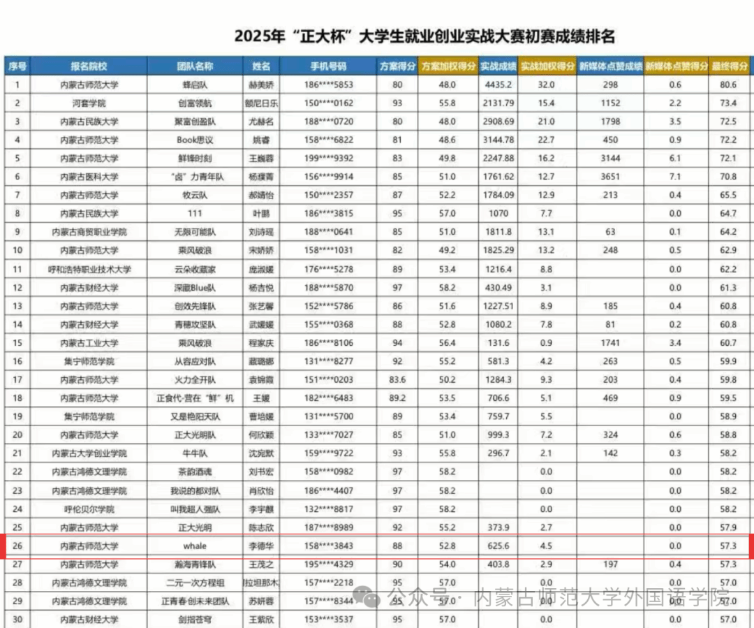 近日,“正大杯”2025大学生就业创业实战大赛实战营销赛道初赛落幕。千亿国际娱乐李德华带领的whale战队,在全自治区969支高校队伍中位列第26名,荣获潜力奖。