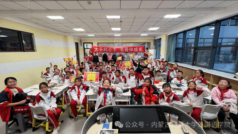 2025年11月6日,千亿国际娱乐“语”你同行志愿者服务队与千亿国际娱乐附属学校小学部联合开展“大手拉小手”英语志愿服务活动。英语系党支部教师田超、陈建刚,团总支负责人徐戌带队参与。本次活动是英语系党支部“党建引领多元协同服务基层学习”立项项目的关键实践,以“一融双高”建设为切入点,不断推动党建与育人工作的深度融合。